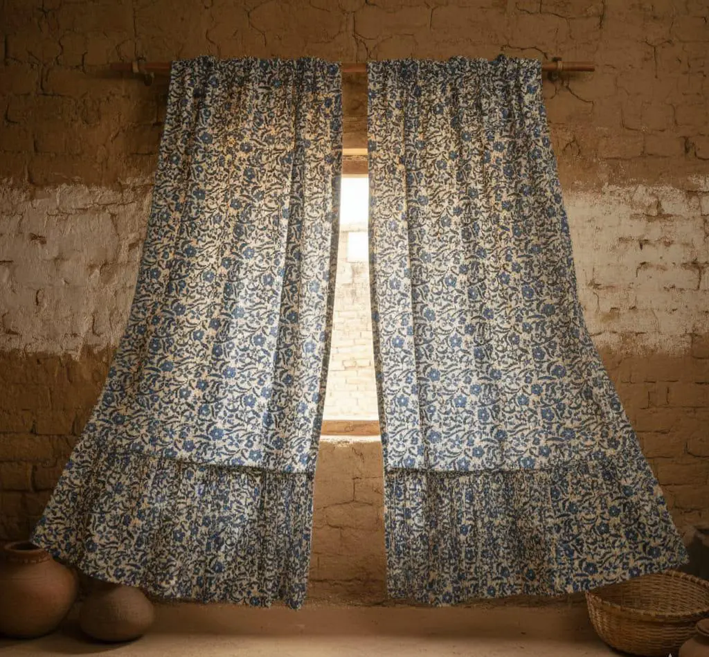 Bring warmth, elegance, and timeless charm into your home with our Blue Floral Cotton Window Curtains. Designed with a delicate hand-block inspired floral pattern in calming blue tones, these curtains create a soft, inviting atmosphere while gently filtering natural light.