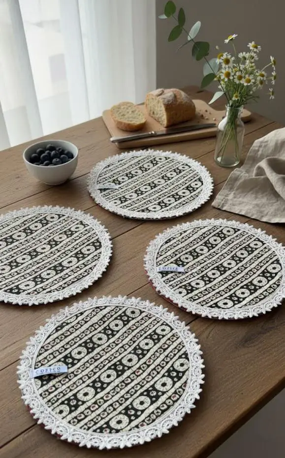 Create a calm, cozy table setting with our classic monochrome lace placemats. Thoughtfully designed with timeless black-and-white patterns and finished with delicate lace edging, these placemats bring understated elegance to everyday dining.