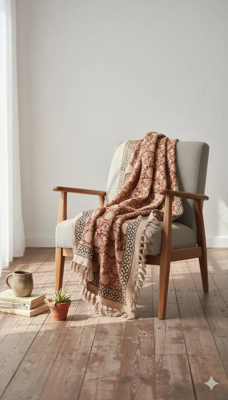 “This throw is a perfect ‘anchor’ piece. Because it combines both organic vines and a structured border, it can bridge the gap between your flowy floral curtains and more rigid, modern furniture pieces.”