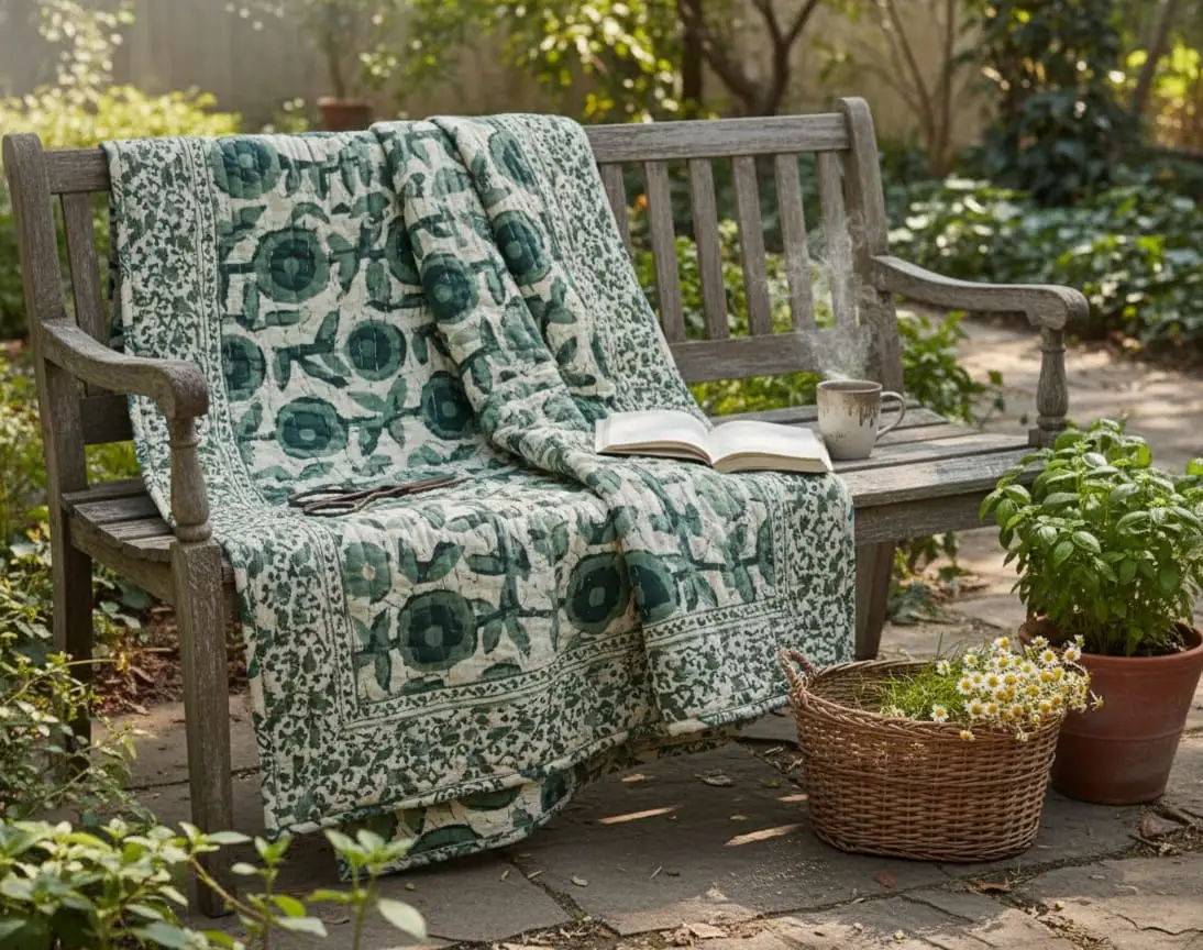 Crafted from 100% premium cotton, this quilt is designed for those who appreciate the beauty of slow-made textiles. The fine hand-stitching provides a gentle weight and drape, making it the perfect companion for slow mornings with a book or cozy evenings on the veranda.