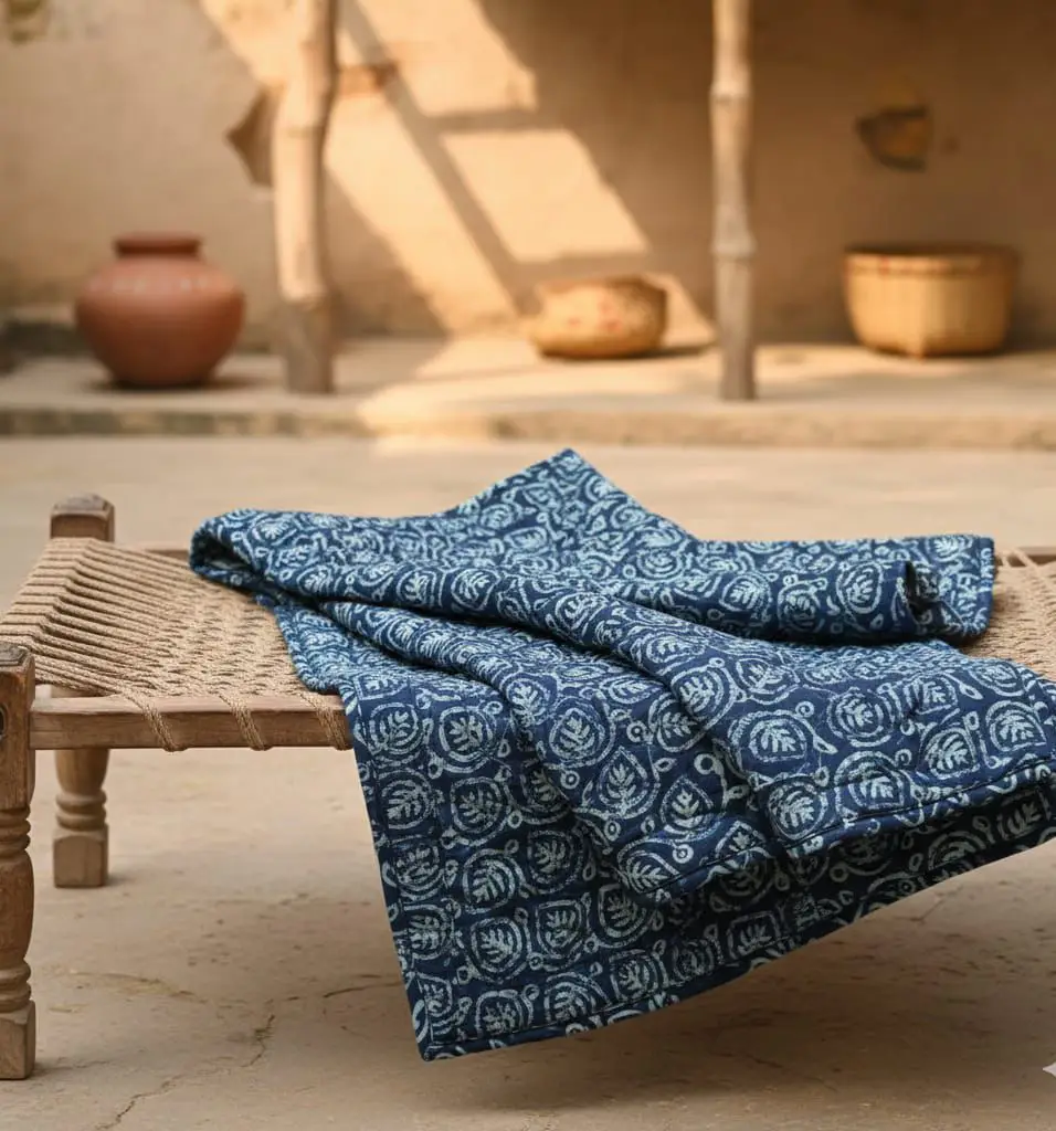 Indigo Handblock Cotton Kantha – Artisan Comfort Collection
