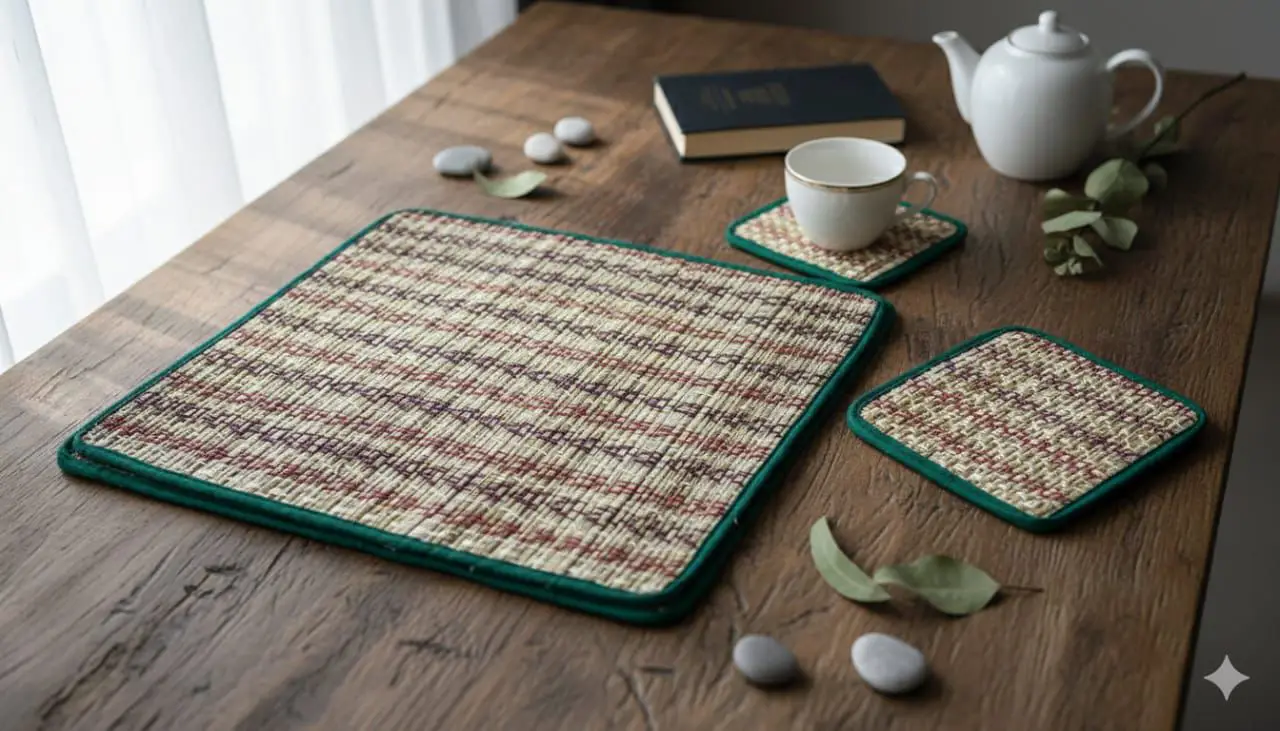 This handcrafted woven mat features a subtle blend of natural tones, creating a warm, textured surface with an understated, organic charm. Finished with a contrasting border for a clean, refined edge, it balances rustic character with everyday elegance. Durable yet soft in appearance, this mat adds a cozy, grounded touch to your table or countertop while effortlessly complementing a calm, curated home aesthetic.🖊️ This handmade products are totally made by the rural artisans for that maybe little imperfections will be there 🙏 . We use 100%natural clay as the raw material.👉🏻Easy to clean No need to use soap / detergent to wash the clayware.
