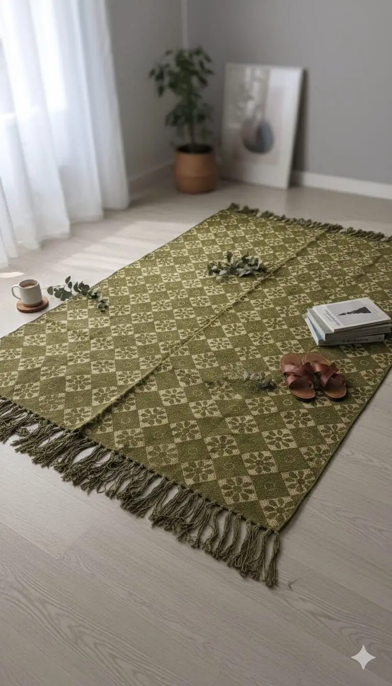 Anchor your living space with the warm, organic texture of our Olive Harvest Rug. Featuring a classic diamond-lattice pattern interspersed with delicate floral motifs, this rug brings a sense of timeless heritage to modern interiors. The muted olive and moss green tones provide a sophisticated splash of color that feels as natural as the garden itself, making it an ideal centerpiece for bedrooms, sunrooms, or cozy lounge areas.