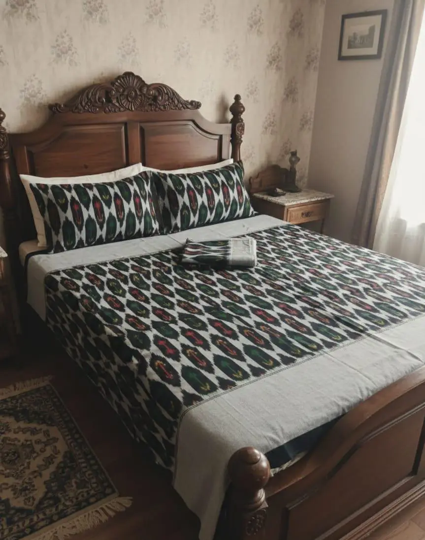 • Dynamic Ikat Artistry: Features an intricate, multi-tonal diamond motif that brings a sense of history and handcrafted texture to your sleeping sanctuary.